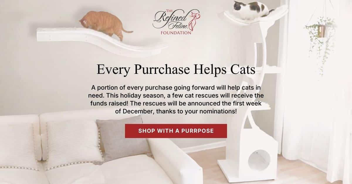 This holiday season, a portion of every sale goes towards our Holiday Fundraiser which helps support cat rescues.